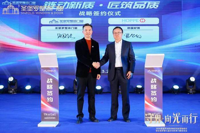 近日,在“守界·向光而行”圣堡罗全国战略经销商营销峰会暨第七届415世界门窗安全日现场,圣堡罗家居集团与全球门窗五金巨头德国HOPPE好博集团双方的战略合作迎来重磅升级,共同宣布将双方战略合作全面升级...
