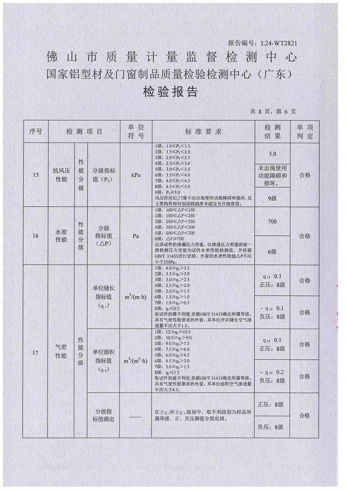 中空 LOW-E 玻璃 K 值低至 1.7W/(m²・K),隔热条导热系数为铝合金 1/533,气密性 6 级、水密性 8 级、抗风压 9 级,均达行业检测满级等级。