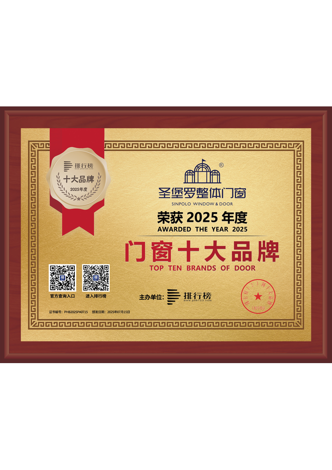 2016,圣堡罗的整体门窗模式持续升温,消费者热捧。荣获铝门窗十大品牌、质量诚信标杆企业、消费者喜爱品牌以及连续三年荣获“产品质量、售后服务30强”等荣誉;